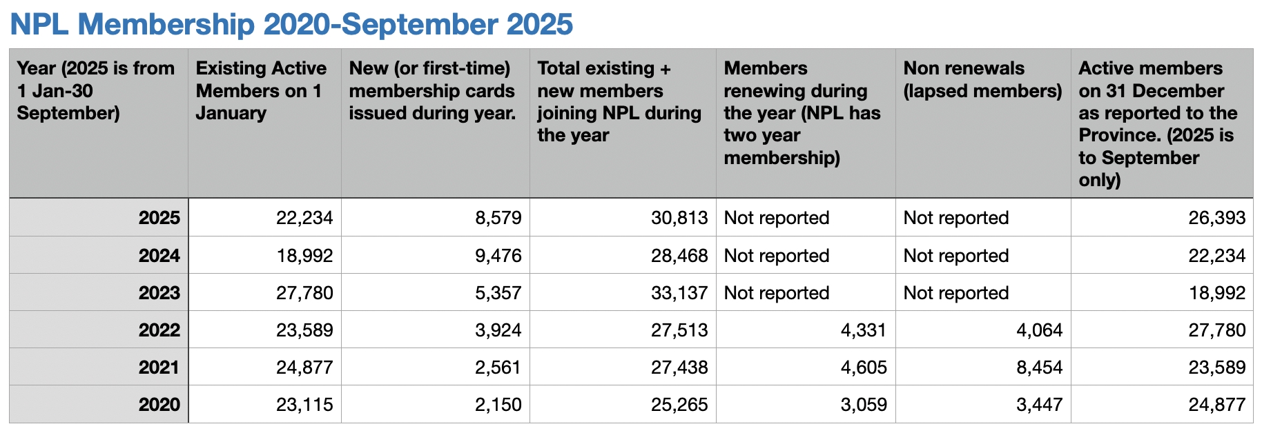 “Memberships remain active for two years and will expire unless the patron renews their membership in-person, on-line or over the phone. This figure is updated monthly and includes new sign-ups, renewals, on-going memberships, while removing expired memberships.”